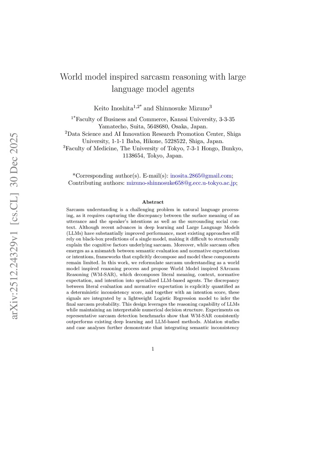 World model inspired sarcasm reasoning with large language model agents