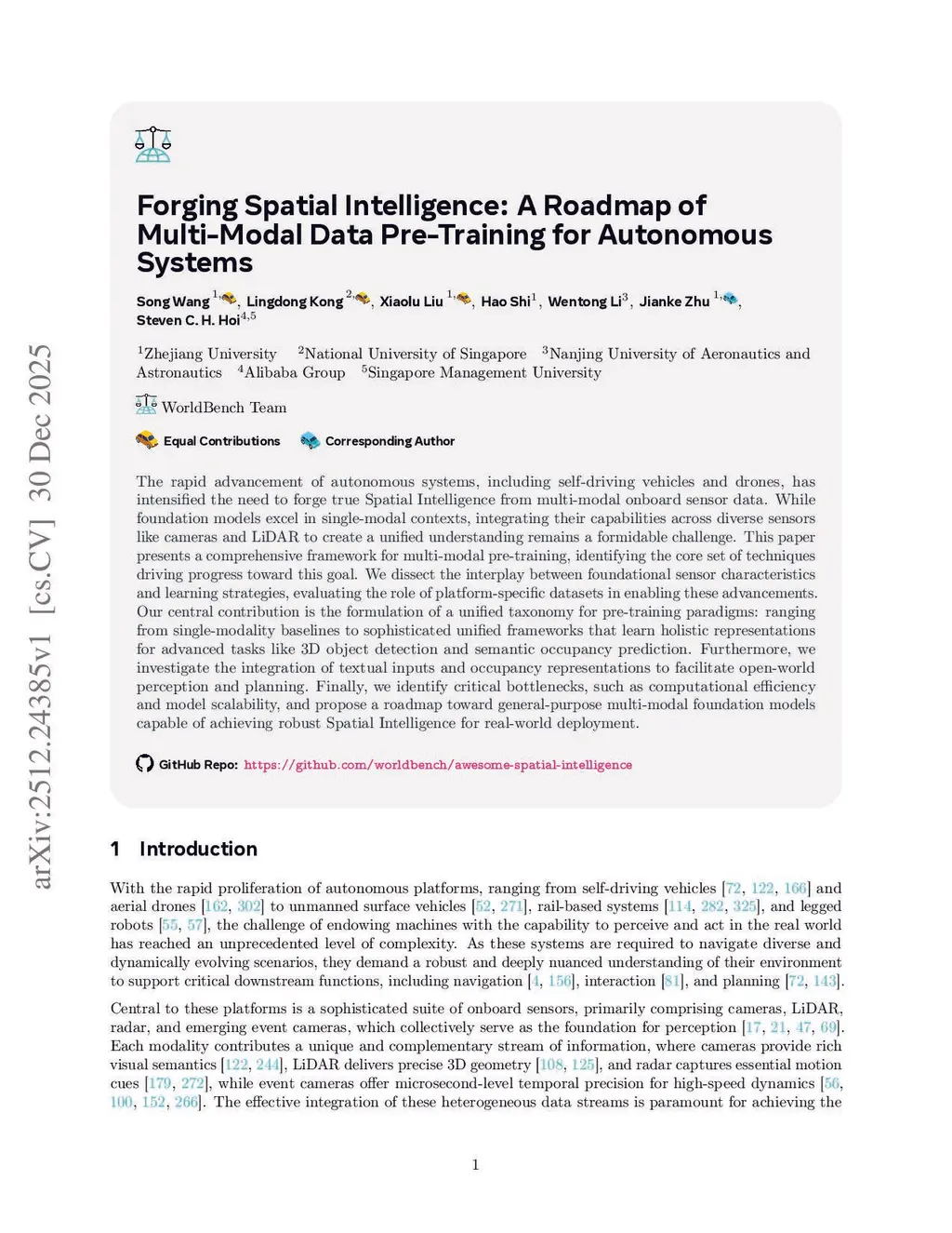 Forging Spatial Intelligence: A Roadmap of Multi-Modal Data Pre-Training for Autonomous Systems