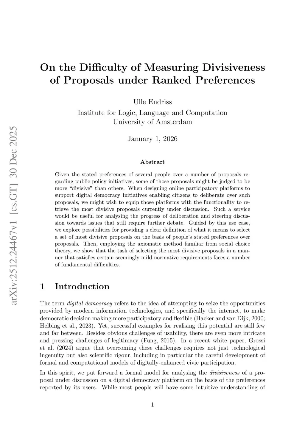 Given the stated preferences of several people over a number of proposals regarding public policy initiatives, some of those proposals might be judged to be more ``divisive'' than others. When designing online participatory platforms to support digital democracy initiatives enabling citizens to deliberate over such proposals, we might wish to equip those platforms with the functionality to retrieve the most divisive proposals currently under discussion. Such a service would be useful for analysing the progress of deliberation and steering discussion towards issues that still require further debate. Guided by this use case, we explore possibilities for providing a clear definition of what it means to select a set of most divisive proposals on the basis of people's stated preferences over proposals. Then, employing the axiomatic method familiar from social choice theory, we show that the task of selecting the most divisive proposals in a manner that satisfies certain seemingly mild normative requirements faces a number of fundamental difficulties.