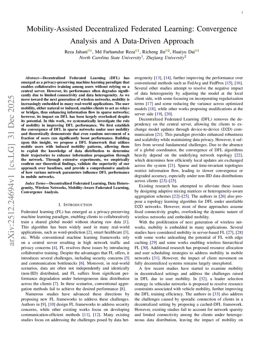 Decentralized Federated Learning (DFL) has emerged as a privacy-preserving machine learning paradigm that enables collaborative training among users without relying on a central server. However, its performance often degrades significantly due to limited connectivity and data heterogeneity. As we move toward the next generation of wireless networks, mobility is increasingly embedded in many real-world applications. The user mobility, either natural or induced, enables clients to act as relays or bridges, thus enhancing information flow in sparse networks; however, its impact on DFL has been largely overlooked despite its potential. In this work, we systematically investigate the role of mobility in improving DFL performance. We first establish the convergence of DFL in sparse networks under user mobility and theoretically demonstrate that even random movement of a fraction of users can significantly boost performance. Building upon this insight, we propose a DFL framework that utilizes mobile users with induced mobility patterns, allowing them to exploit the knowledge of data distribution to determine their trajectories to enhance information propagation through the network. Through extensive experiments, we empirically confirm our theoretical findings, validate the superiority of our approach over baselines, and provide a comprehensive analysis of how various network parameters influence DFL performance in mobile networks.