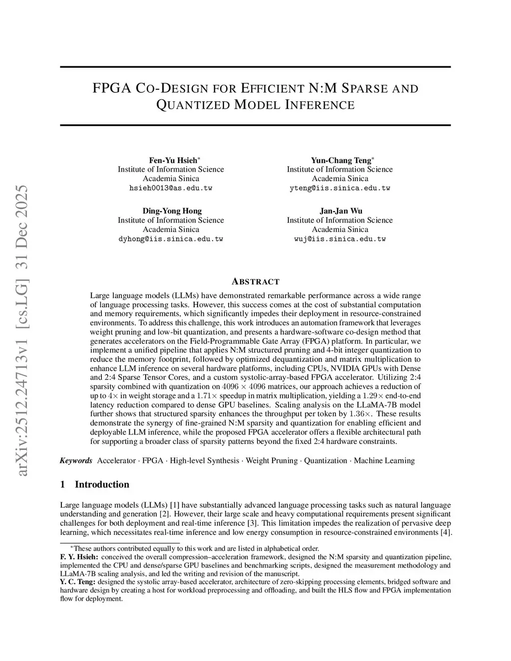 FPGA Co-Design for Efficient N:M Sparse and Quantized Model Inference