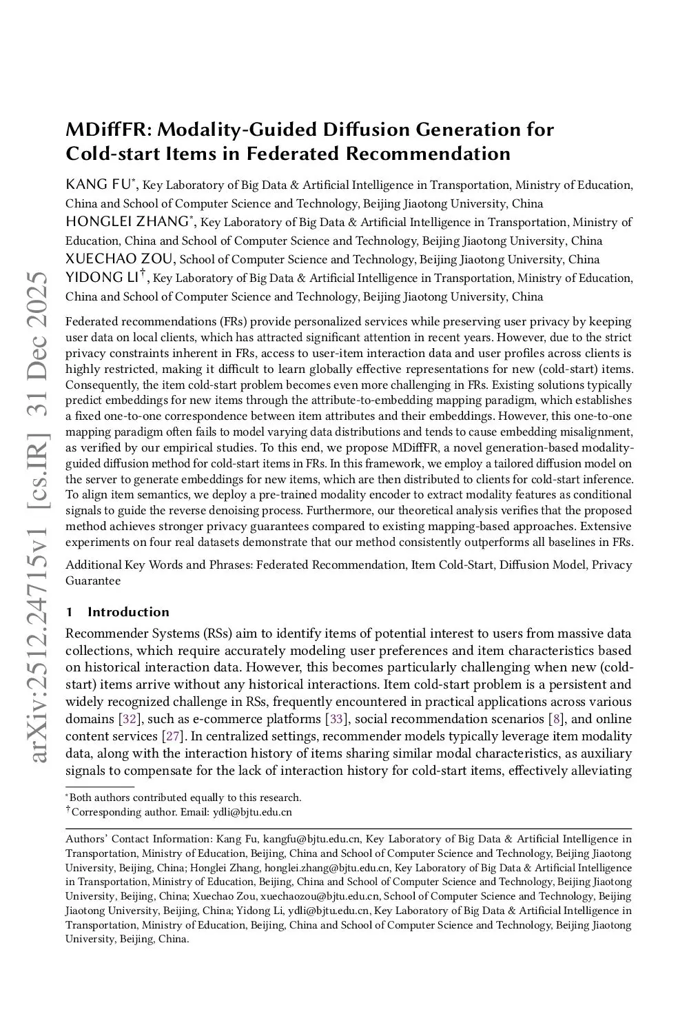 MDiffFR: Modality-Guided Diffusion Generation for Cold-start Items in Federated Recommendation