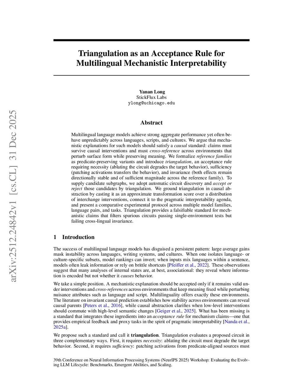 Triangulation as an Acceptance Rule for Multilingual Mechanistic Interpretability