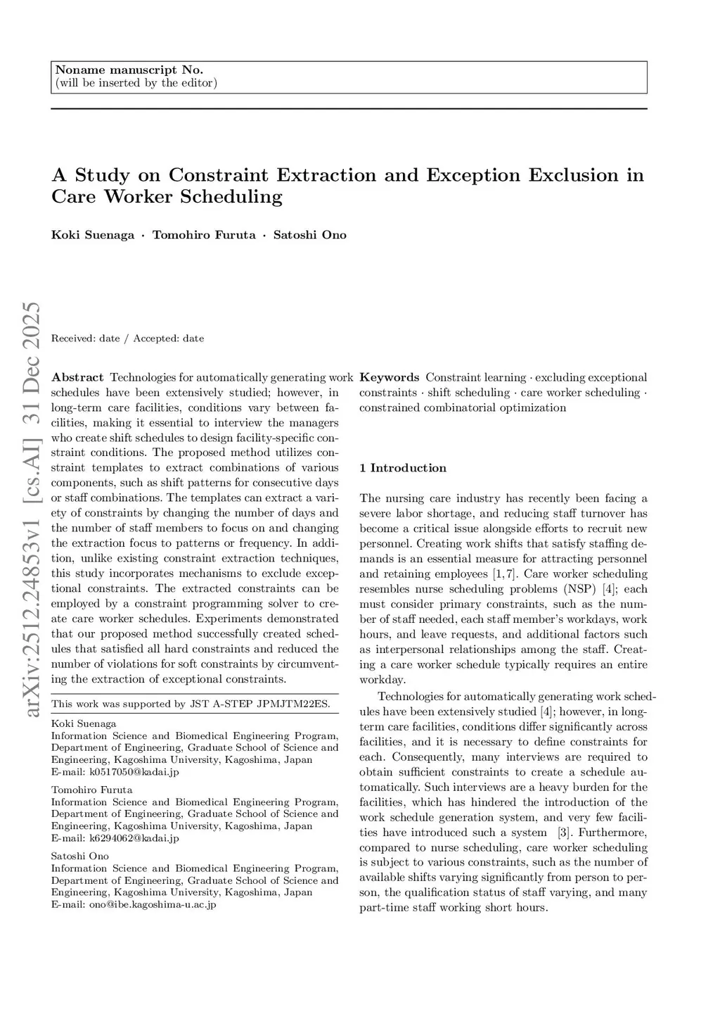 A study on constraint extraction and exception exclusion in care worker scheduling