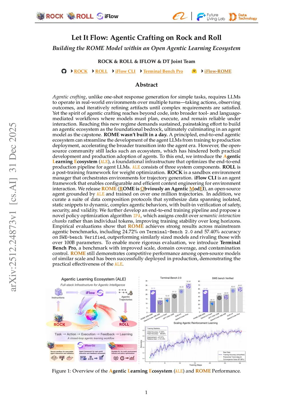 Agentic crafting requires LLMs to operate in real-world environments over multiple turns by taking actions, observing outcomes, and iteratively refining artifacts. Despite its importance, the open-source community lacks a principled, end-to-end ecosystem to streamline agent development. We introduce the Agentic Learning Ecosystem (ALE), a foundational infrastructure that optimizes the production pipeline for agent LLMs. ALE consists of three components: ROLL, a post-training framework for weight optimization; ROCK, a sandbox environment manager for trajectory generation; and iFlow CLI, an agent framework for efficient context engineering. We release ROME (ROME is Obviously an Agentic Model), an open-source agent grounded by ALE and trained on over one million trajectories. Our approach includes data composition protocols for synthesizing complex behaviors and a novel policy optimization algorithm, Interaction-based Policy Alignment (IPA), which assigns credit over semantic interaction chunks rather than individual tokens to improve long-horizon training stability. Empirically, we evaluate ROME within a structured setting and introduce Terminal Bench Pro, a benchmark with improved scale and contamination control. ROME demonstrates strong performance across benchmarks like SWE-bench Verified and Terminal Bench, proving the effectiveness of the ALE infrastructure.
