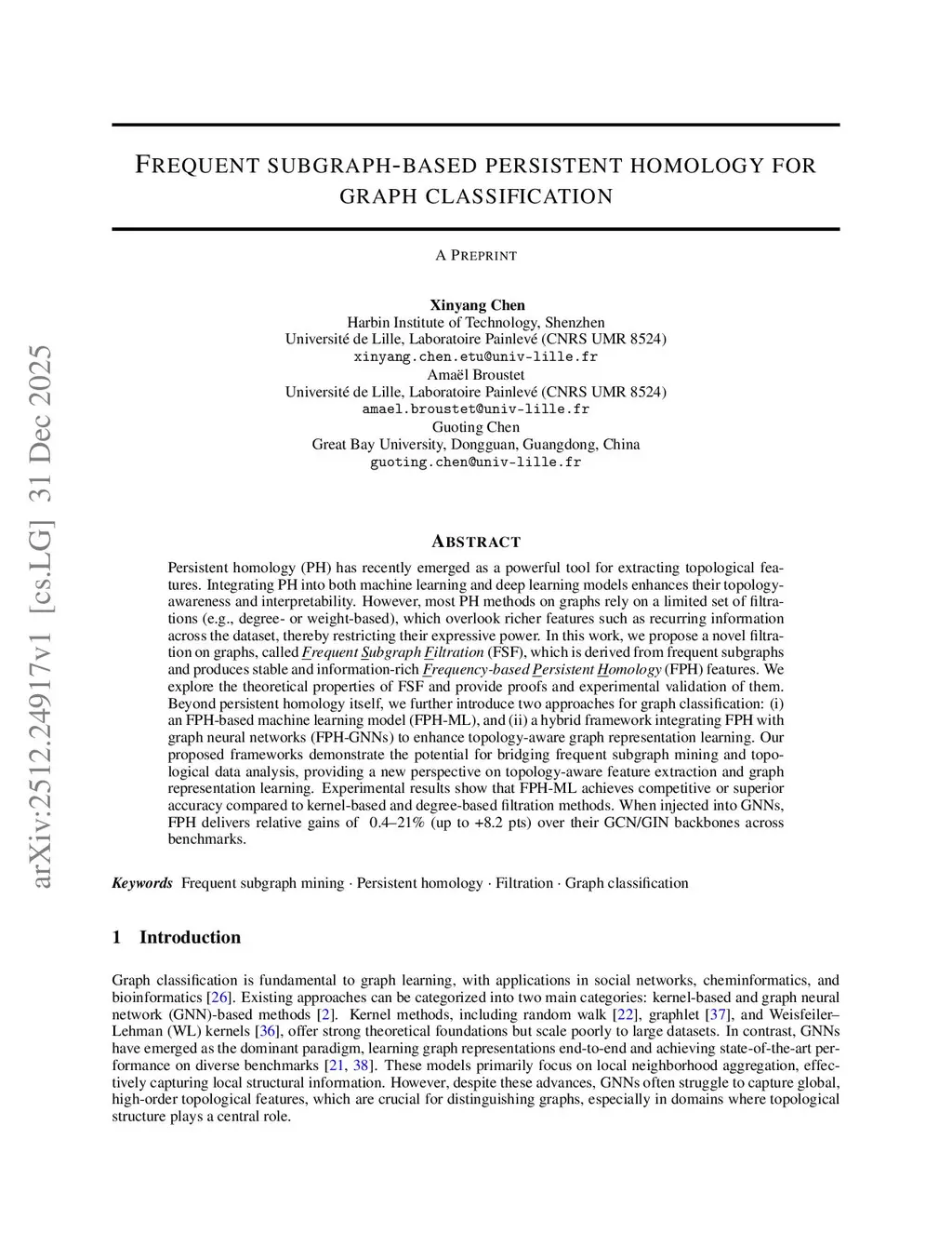 Persistent homology (PH) has recently emerged as a powerful tool for extracting topological features. Integrating PH into machine learning and deep learning models enhances topology awareness and interpretability. However, most PH methods on graphs rely on a limited set of filtrations, such as degree-based or weight-based filtrations, which overlook richer features like recurring information across the dataset and thus restrict expressive power. In this work, we propose a novel graph filtration called Frequent Subgraph Filtration (FSF), which is derived from frequent subgraphs and produces stable and information-rich frequency-based persistent homology (FPH) features. We study the theoretical properties of FSF and provide both proofs and experimental validation. Beyond persistent homology itself, we introduce two approaches for graph classification: an FPH-based machine learning model (FPH-ML) and a hybrid framework that integrates FPH with graph neural networks (FPH-GNNs) to enhance topology-aware graph representation learning. Our frameworks bridge frequent subgraph mining and topological data analysis, offering a new perspective on topology-aware feature extraction. Experimental results show that FPH-ML achieves competitive or superior accuracy compared with kernel-based and degree-based filtration methods. When integrated into graph neural networks, FPH yields relative performance gains ranging from 0.4 to 21 percent, with improvements of up to 8.2 percentage points over GCN and GIN backbones across benchmarks.