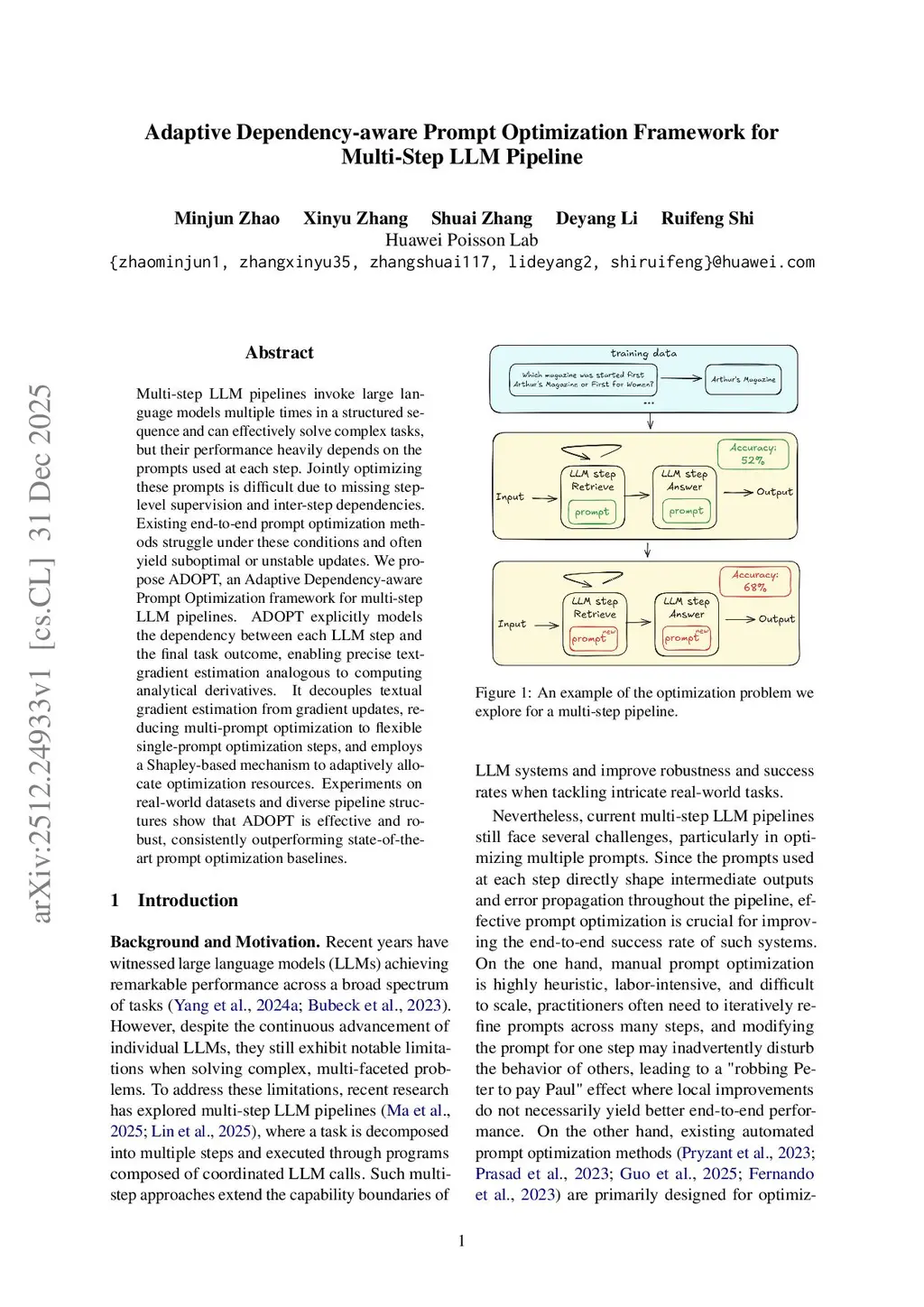 Adaptive Dependency-aware Prompt Optimization Framework for Multi-Step LLM Pipeline