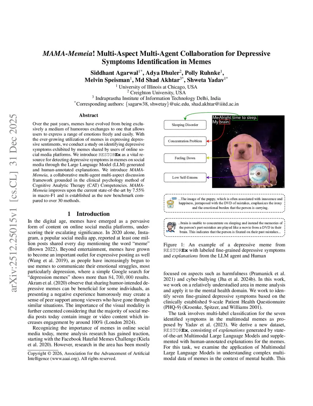 Over the past years, memes have evolved from being exclusively a medium of humorous exchanges to one that allows users to express a range of emotions freely and easily. With the ever-growing utilization of memes in expressing depressive sentiments, we conduct a study on identifying depressive symptoms exhibited by memes shared by users of online social media platforms. We introduce RESTOREx as a vital resource for detecting depressive symptoms in memes on social media through the Large Language Model (LLM) generated and human-annotated explanations. We introduce MAMAMemeia, a collaborative multi-agent multi-aspect discussion framework grounded in the clinical psychology method of Cognitive Analytic Therapy (CAT) Competencies. MAMAMemeia improves upon the current state-of-the-art by 7.55% in macro-F1 and is established as the new benchmark compared to over 30 methods.