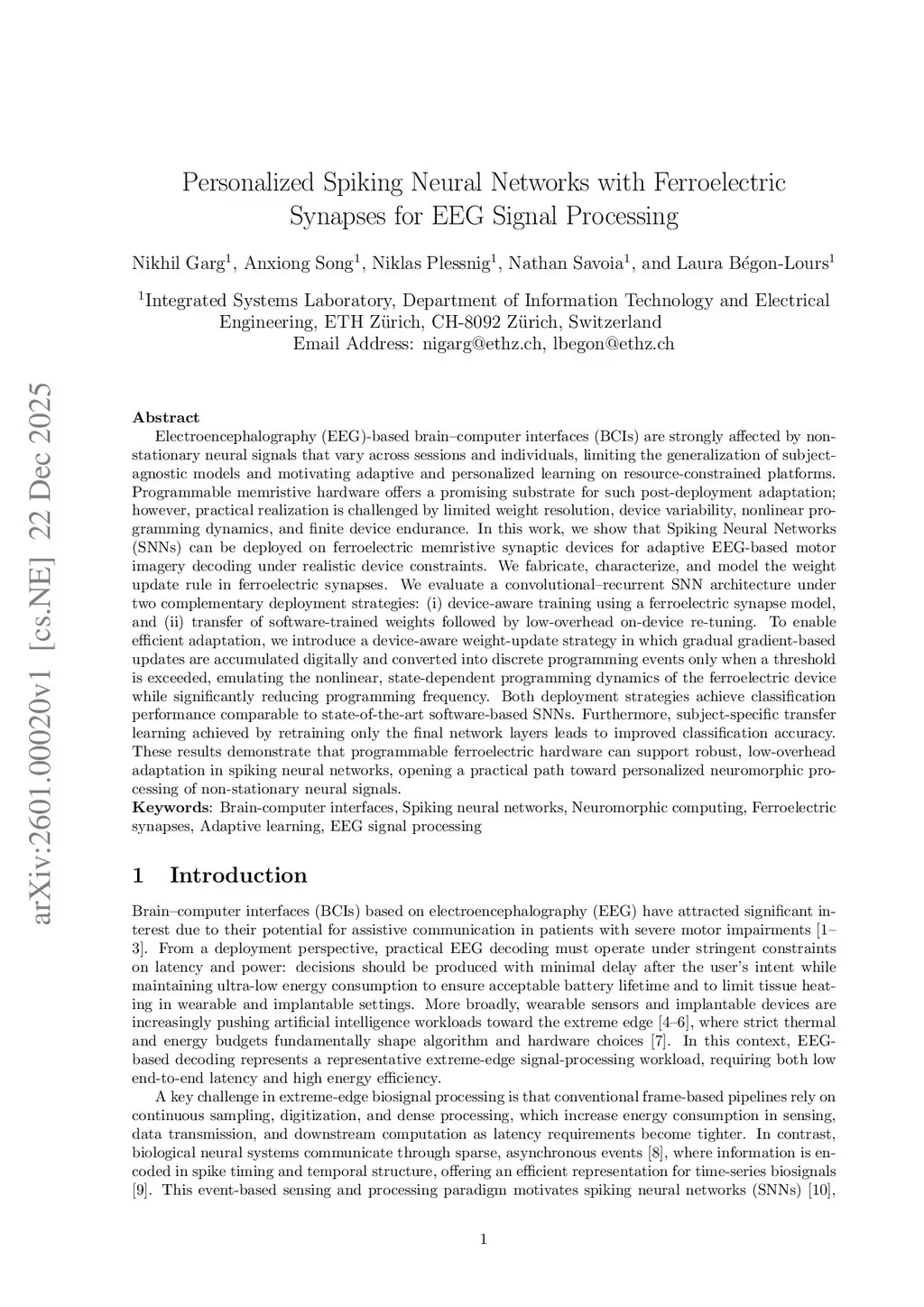 Personalized Spiking Neural Networks with Ferroelectric Synapses for EEG Signal Processing