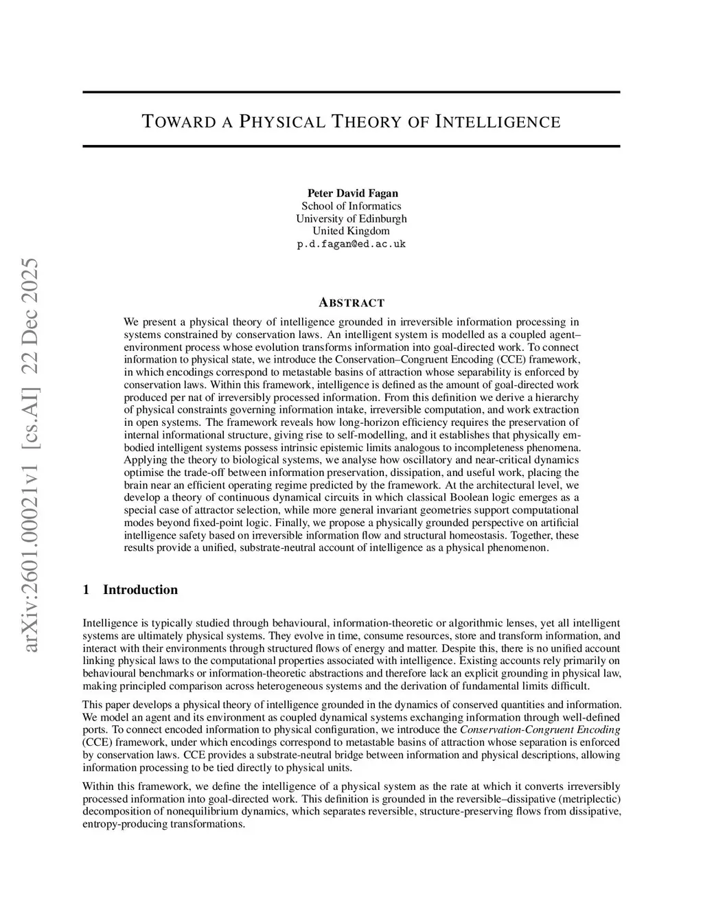 Toward a Physical Theory of Intelligence