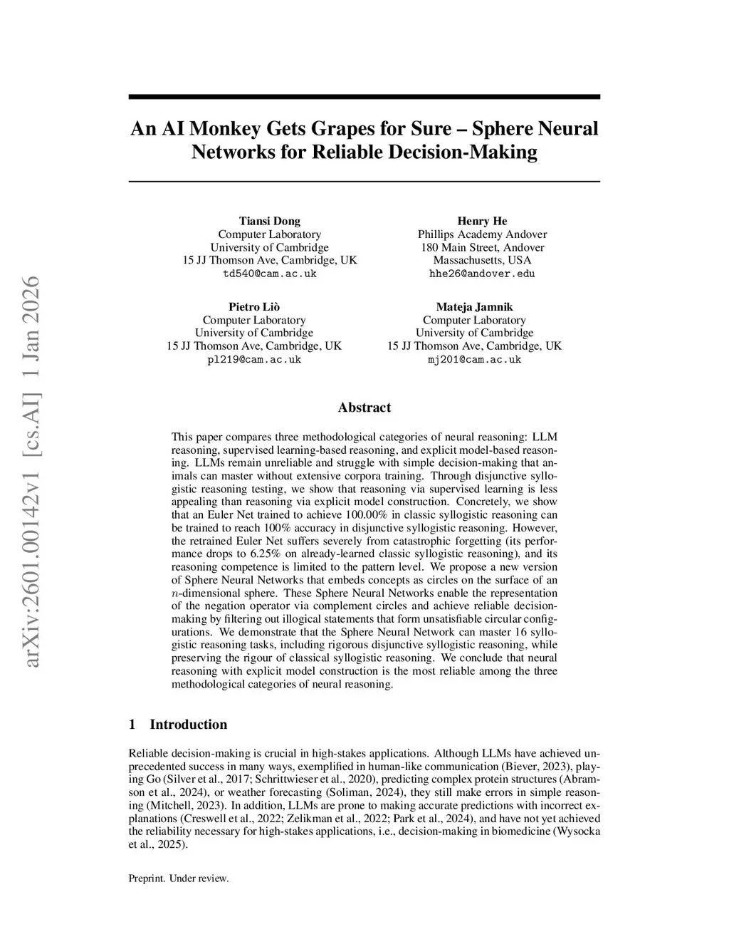 An AI Monkey Gets Grapes for Sure -- Sphere Neural Networks for Reliable Decision-Making