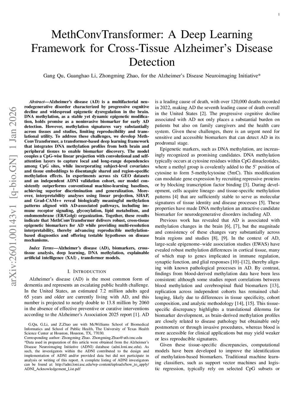 MethConvTransformer: A Deep Learning Framework for Cross-Tissue Alzheimer's Disease Detection
