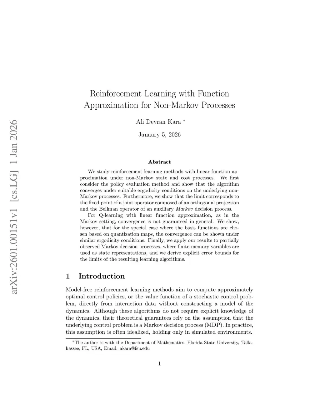Reinforcement Learning with Function Approximation for Non-Markov Processes
