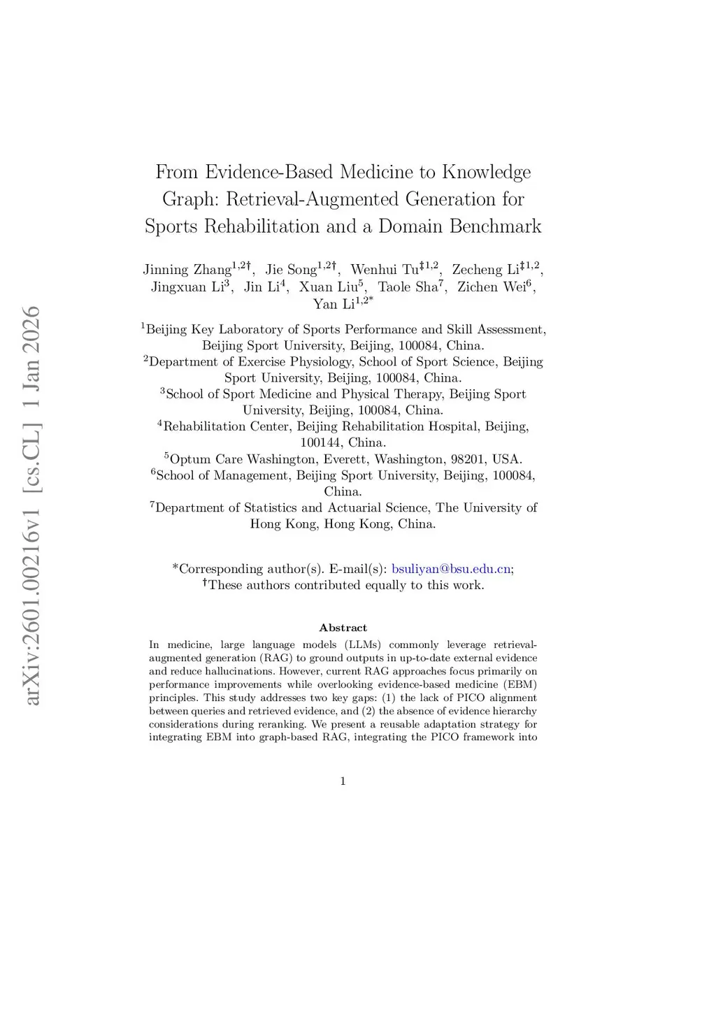 From Evidence-Based Medicine to Knowledge Graph: Retrieval-Augmented Generation for Sports Rehabilitation and a Domain Benchmark