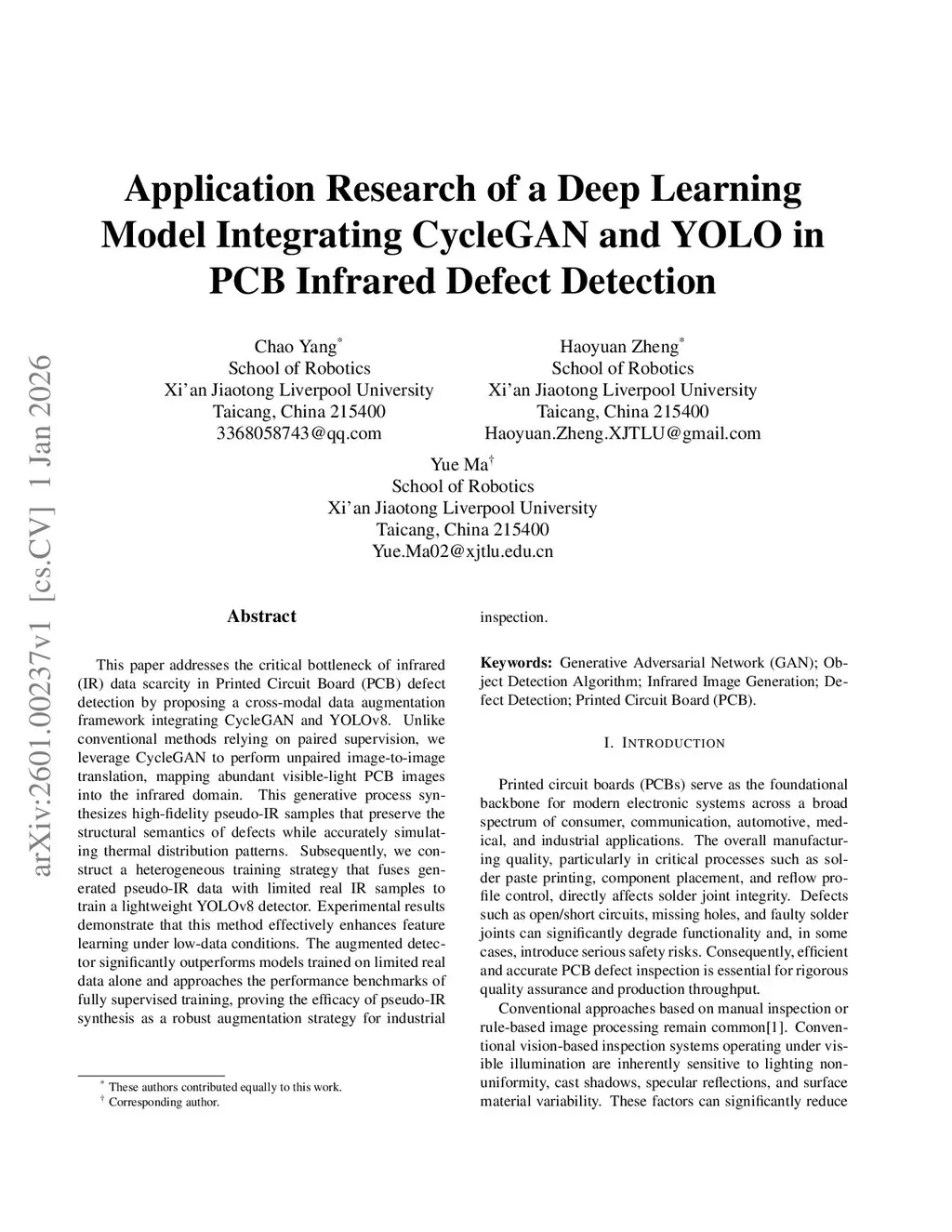 Application Research of a Deep Learning Model Integrating CycleGAN and YOLO in PCB Infrared Defect Detection