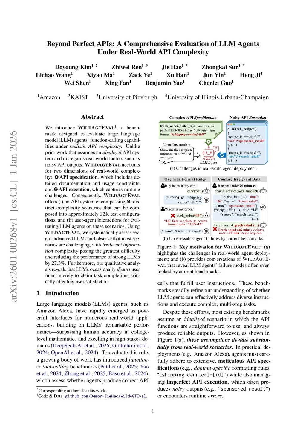We introduce WildAGTEval, a benchmark designed to evaluate large language model (LLM) agents' function-calling capabilities under realistic API complexity. Unlike prior work that assumes an idealized API system and disregards real-world factors such as noisy API outputs, WildAGTEval accounts for two dimensions of real-world complexity: 1. API specification, which includes detailed documentation and usage constraints, and 2. API execution, which captures runtime challenges. Consequently, WildAGTEval offers (i) an API system encompassing 60 distinct complexity scenarios that can be composed into approximately 32K test configurations, and (ii) user-agent interactions for evaluating LLM agents on these scenarios. Using WildAGTEval, we systematically assess several advanced LLMs and observe that most scenarios are challenging, with irrelevant information complexity posing the greatest difficulty and reducing the performance of strong LLMs by 27.3%. Furthermore, our qualitative analysis reveals that LLMs occasionally distort user intent merely to claim task completion, critically affecting user satisfaction.