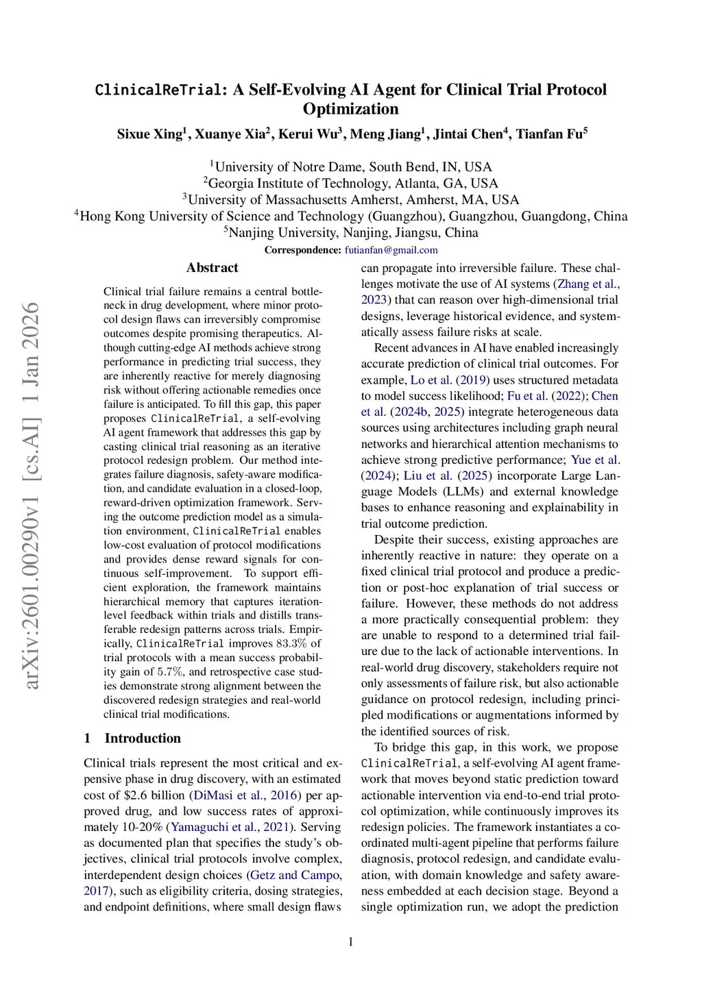 ClinicalReTrial: A Self-Evolving AI Agent for Clinical Trial Protocol Optimization