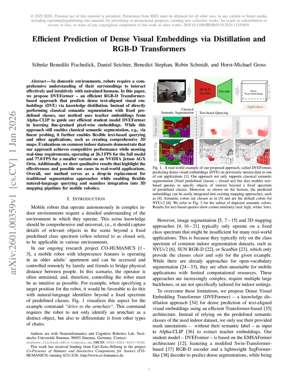 Efficient Prediction of Dense Visual Embeddings via Distillation and RGB-D Transformers