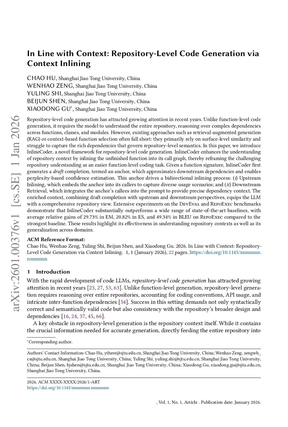 In Line with Context: Repository-Level Code Generation via Context Inlining