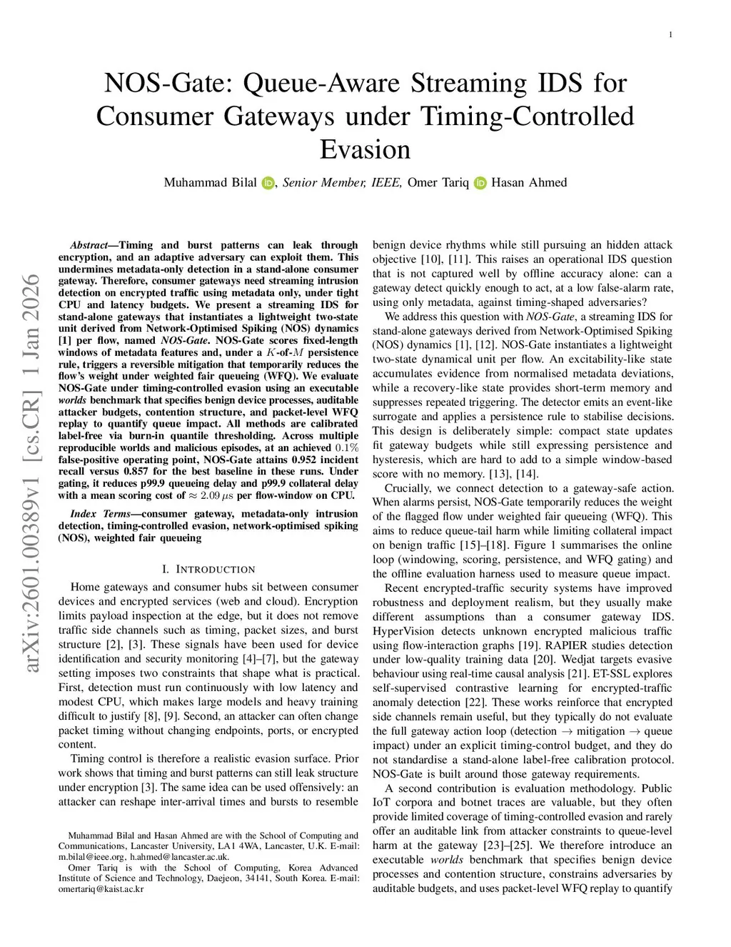 NOS-Gate: Queue-Aware Streaming IDS for Consumer Gateways under Timing-Controlled Evasion