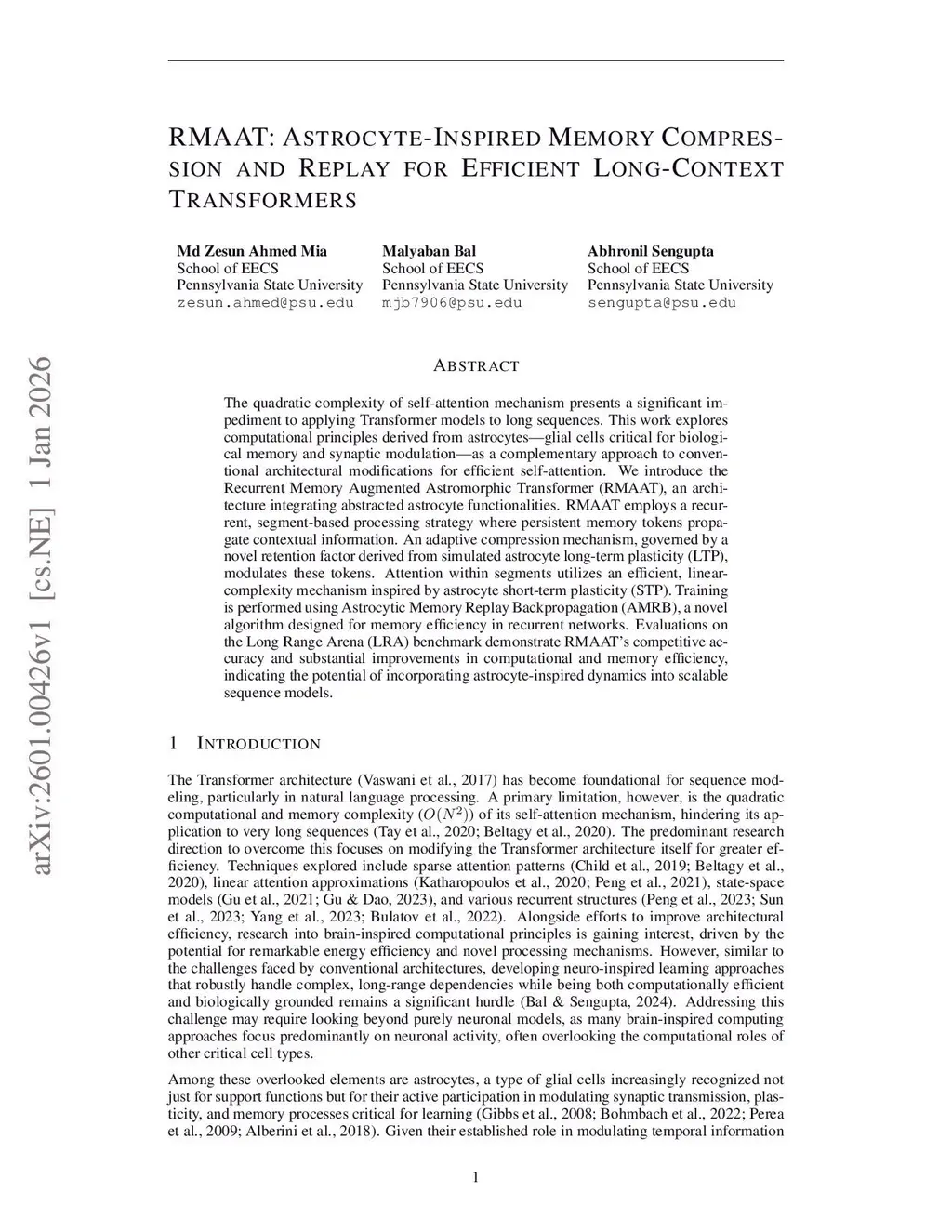 RMAAT: Astrocyte-Inspired Memory Compression and Replay for Efficient Long-Context Transformers