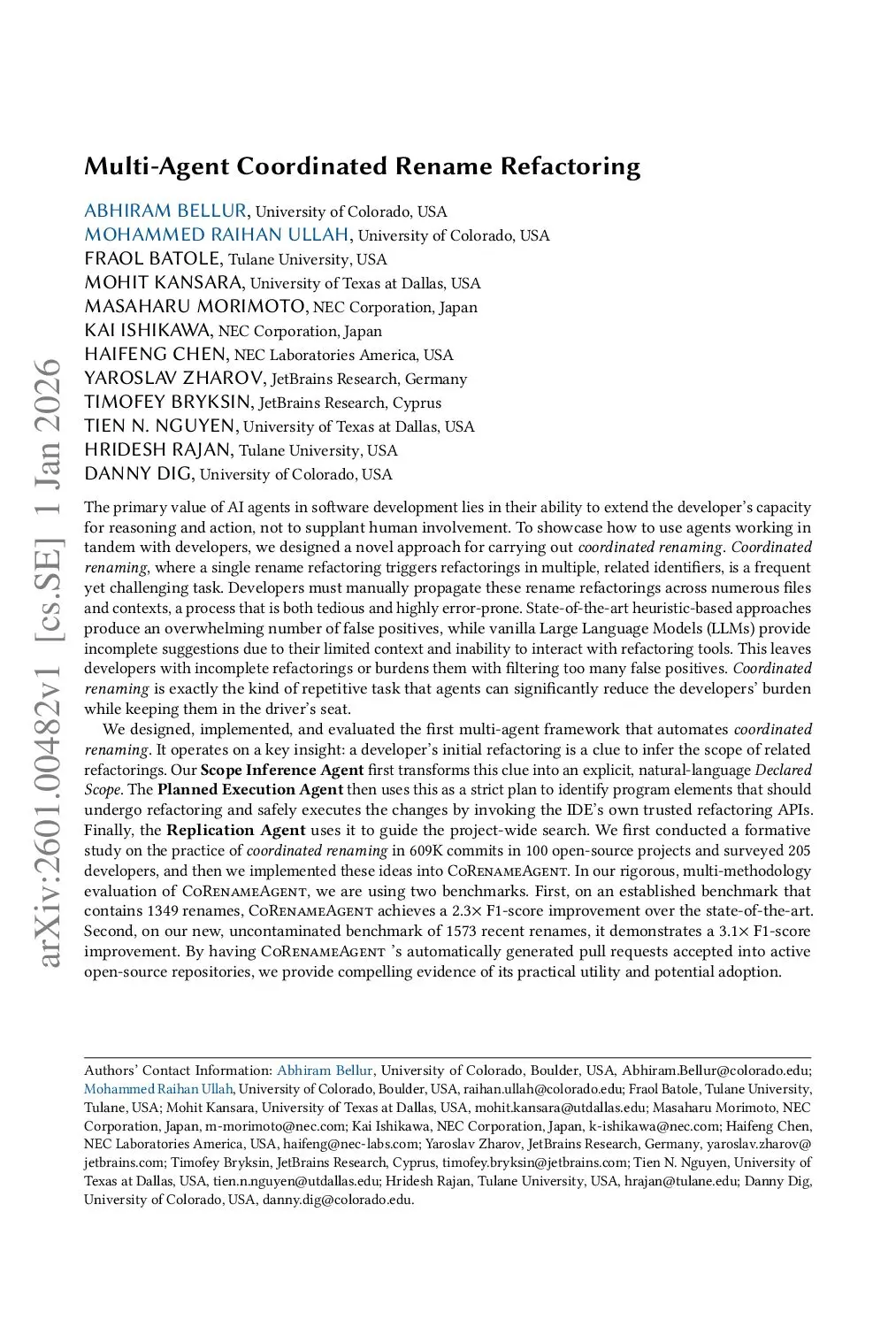 Multi-Agent Coordinated Rename Refactoring