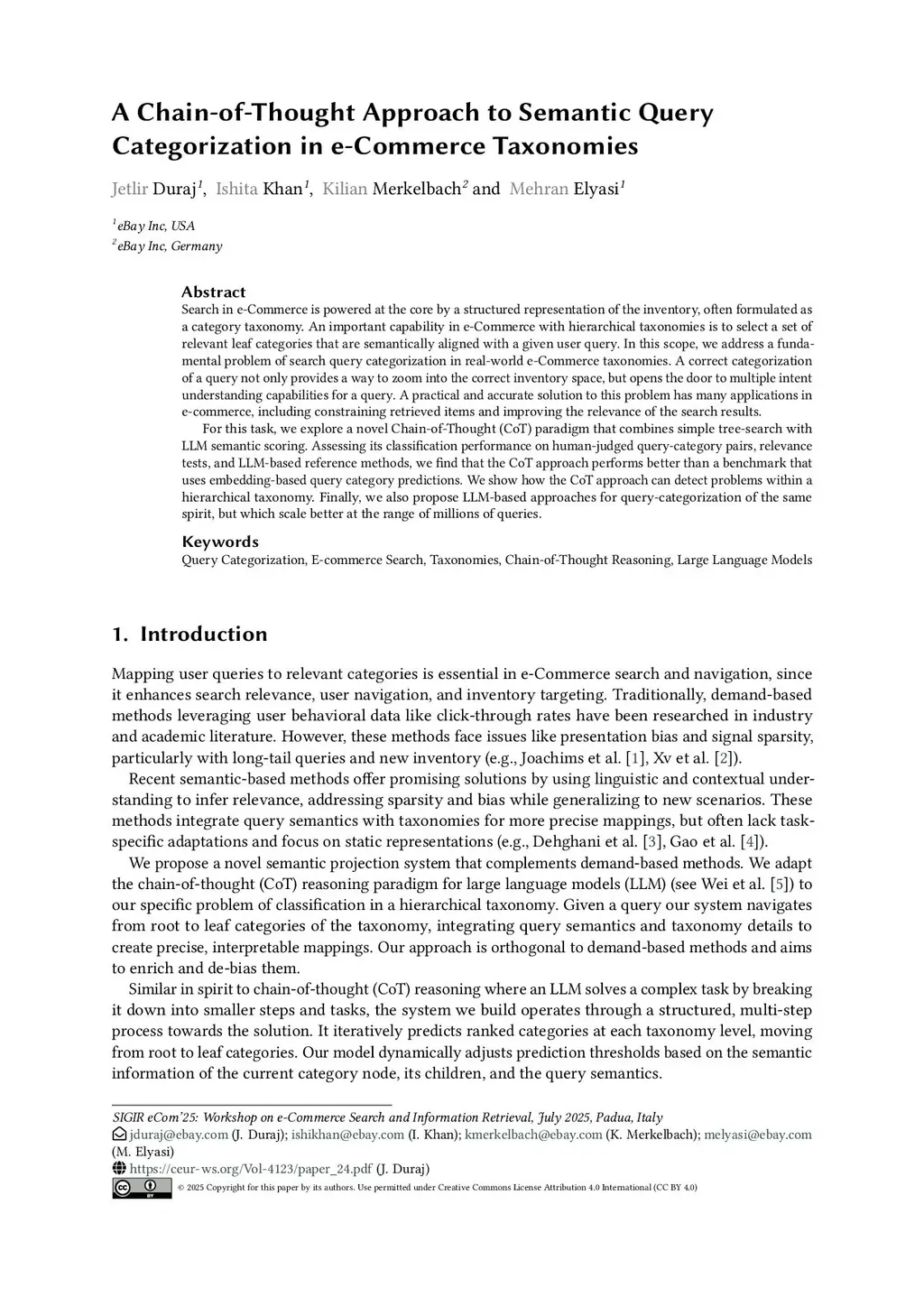 A Chain-of-Thought Approach to Semantic Query Categorization in e-Commerce Taxonomies