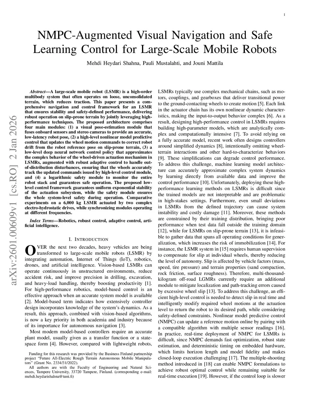 NMPC-Augmented Visual Navigation and Safe Learning Control for Large-Scale Mobile Robots