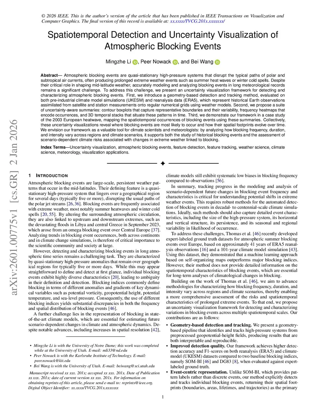 Spatiotemporal Detection and Uncertainty Visualization of Atmospheric Blocking Events