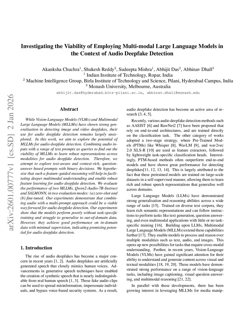 Investigating the Viability of Employing Multi-modal Large Language Models in the Context of Audio Deepfake Detection
