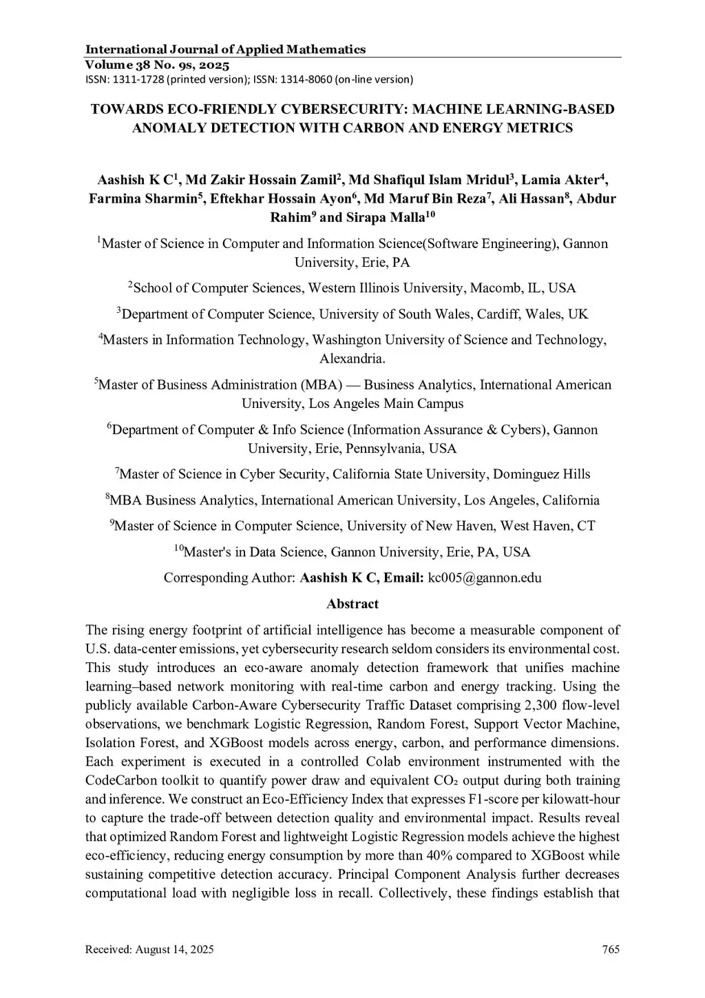 Towards eco friendly cybersecurity: machine learning based anomaly detection with carbon and energy metrics