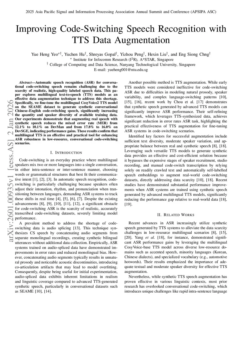 Improving Code-Switching Speech Recognition with TTS Data Augmentation