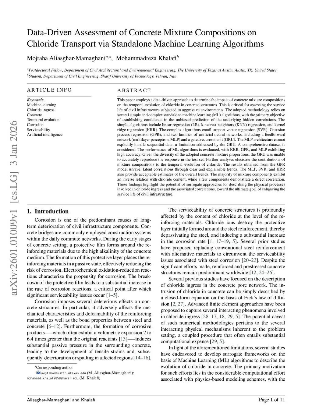 Data-Driven Assessment of Concrete Mixture Compositions on Chloride Transport via Standalone Machine Learning Algorithms