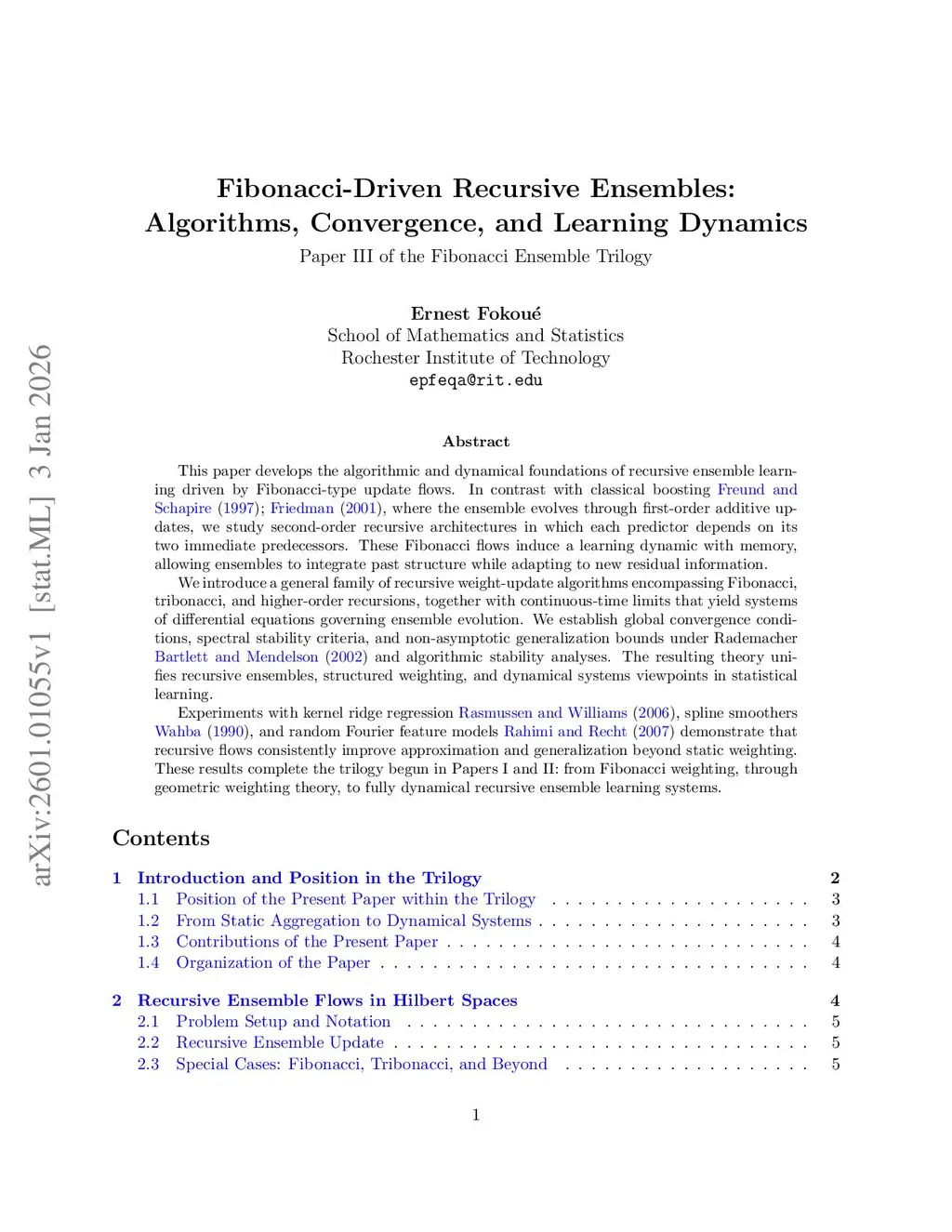 Fibonacci-Driven Recursive Ensembles: Algorithms, Convergence, and Learning Dynamics