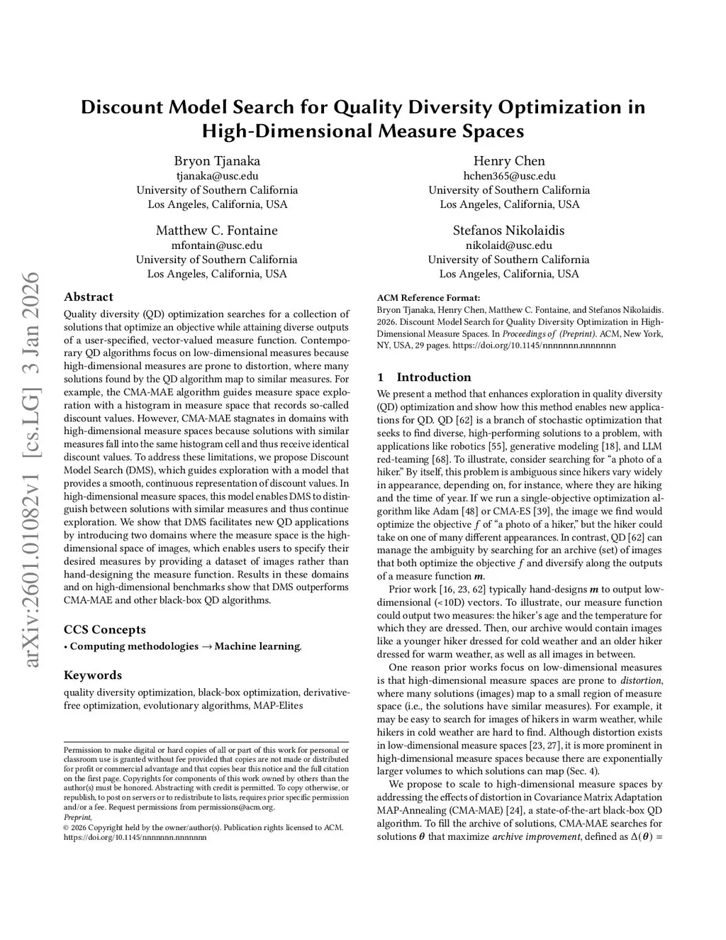 Discount Model Search for Quality Diversity Optimization in High-Dimensional Measure Spaces