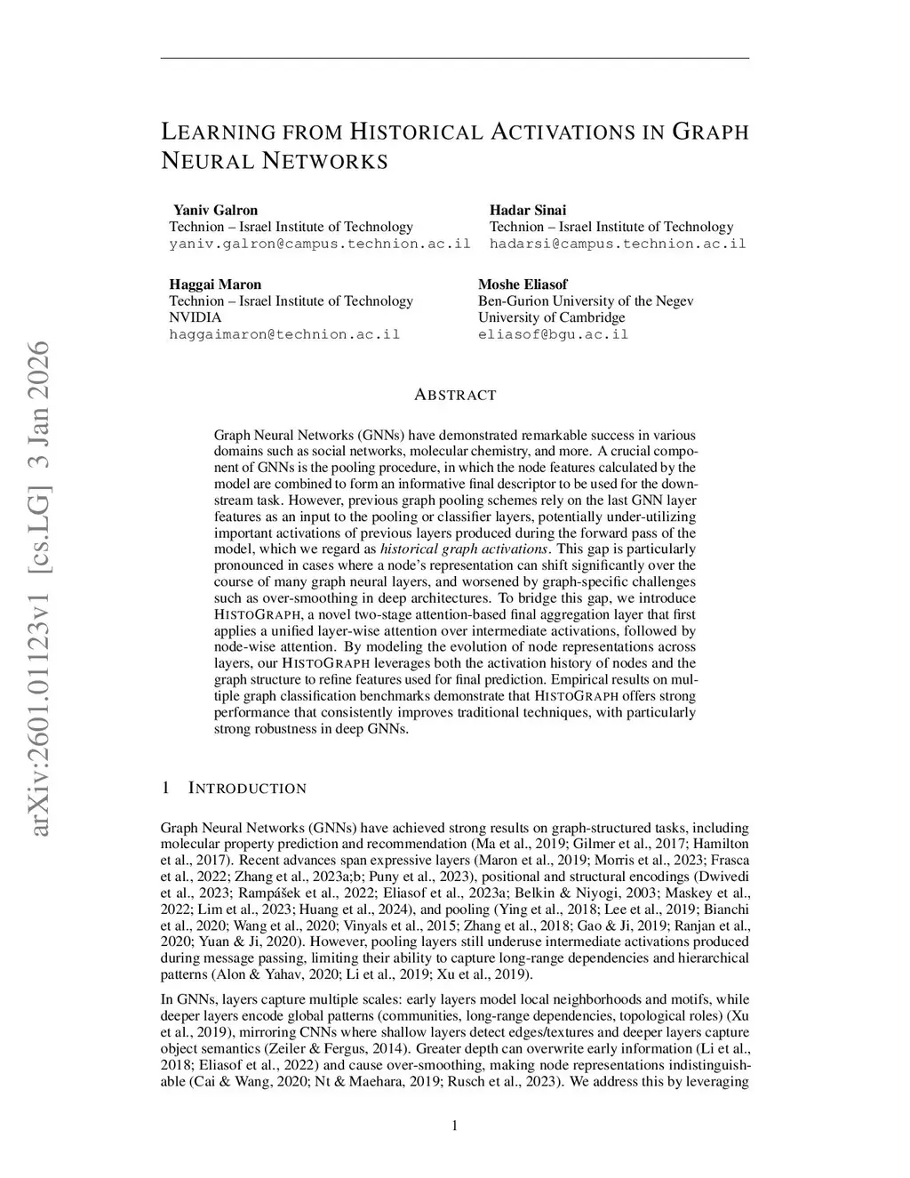 Graph Neural Networks (GNNs) have demonstrated remarkable success in various domains such as social networks, molecular chemistry, and more. A crucial component of GNNs is the pooling procedure, in which the node features calculated by the model are combined to form an informative final descriptor to be used for the downstream task. However, previous graph pooling schemes rely on the last GNN layer features as an input to the pooling or classifier layers, potentially under-utilizing important activations of previous layers produced during the forward pass of the model, which we regard as historical graph activations. This gap is particularly pronounced in cases where a node's representation can shift significantly over the course of many graph neural layers, and worsened by graph-specific challenges such as over-smoothing in deep architectures. To bridge this gap, we introduce HISTOGRAPH, a novel two-stage attention-based final aggregation layer that first applies a unified layer-wise attention over intermediate activations, followed by node-wise attention. By modeling the evolution of node representations across layers, our HISTOGRAPH leverages both the activation history of nodes and the graph structure to refine features used for final prediction. Empirical results on multiple graph classification benchmarks demonstrate that HISTOGRAPH offers strong performance that consistently improves traditional techniques, with particularly strong robustness in deep GNNs.