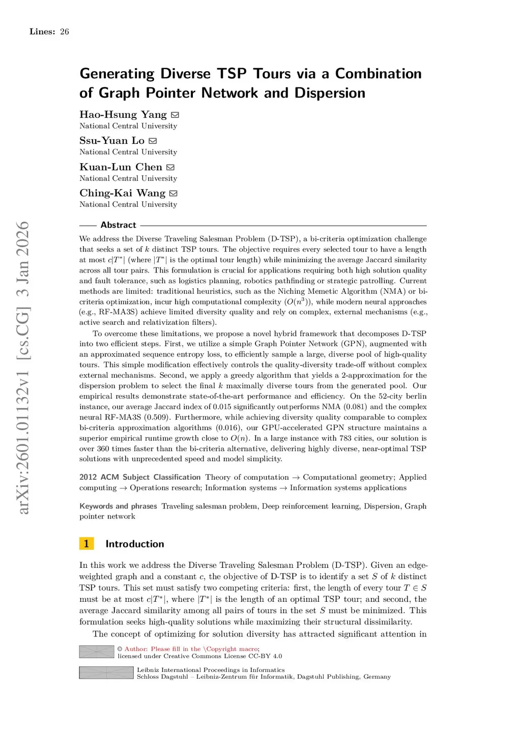 Generating Diverse TSP Tours via a Combination of Graph Pointer Network and Dispersion