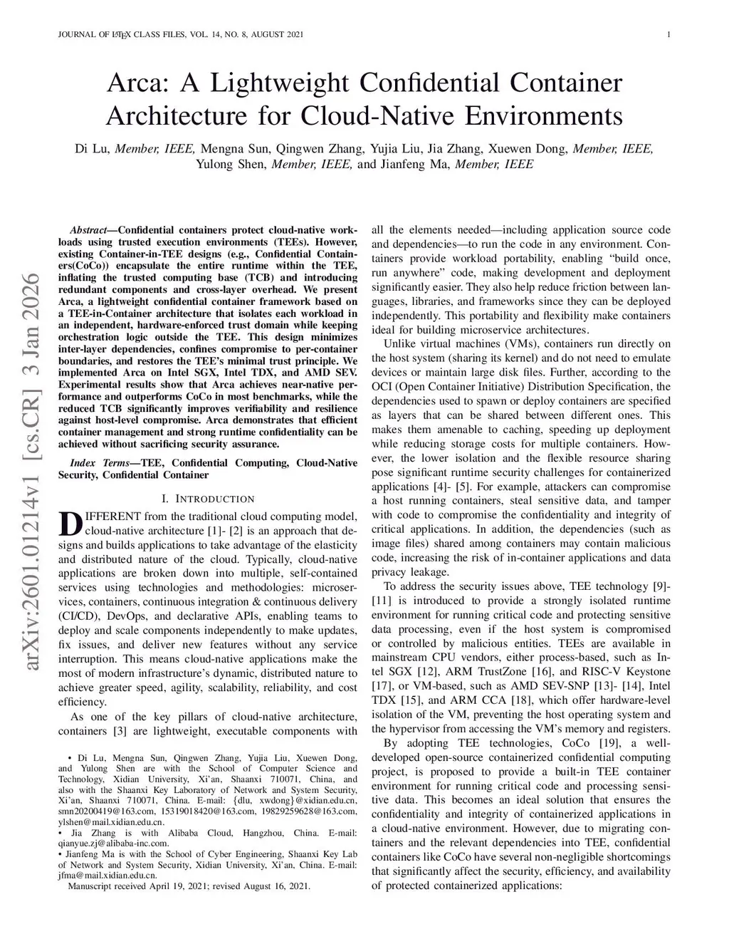 Arca: A Lightweight Confidential Container Architecture for Cloud-Native Environments