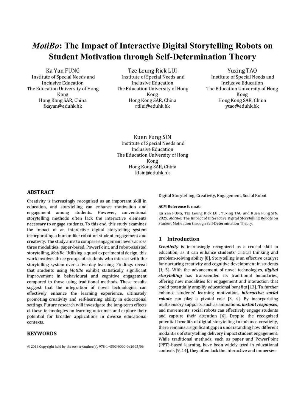MotiBo: The Impact of Interactive Digital Storytelling Robots on Student Motivation through Self-Determination Theory