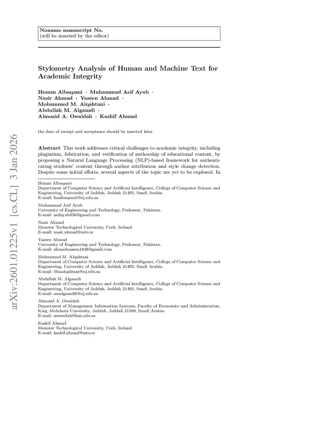 Stylometry Analysis of Human and Machine Text for Academic Integrity