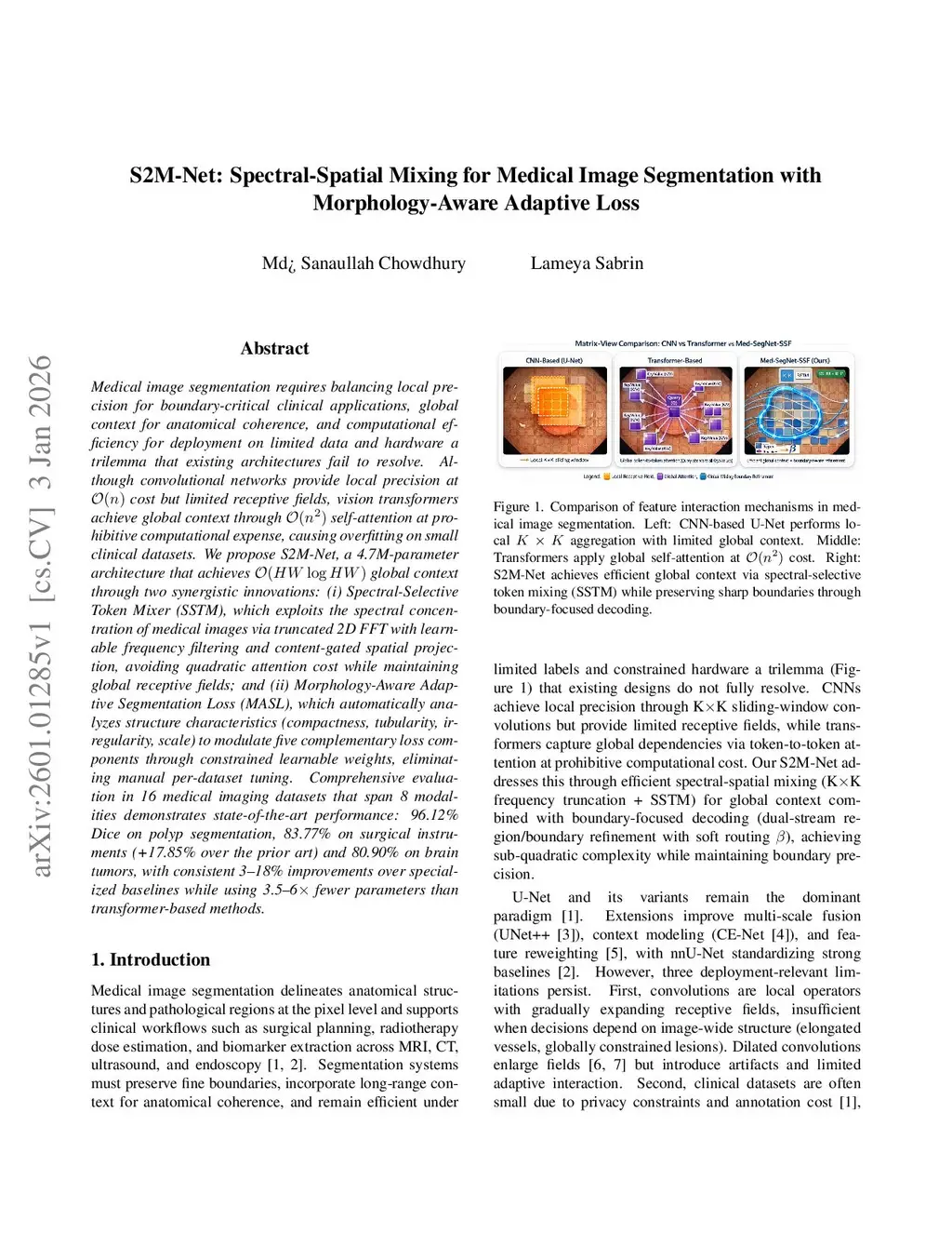 S2M-Net: Spectral-Spatial Mixing for Medical Image Segmentation with Morphology-Aware Adaptive Loss