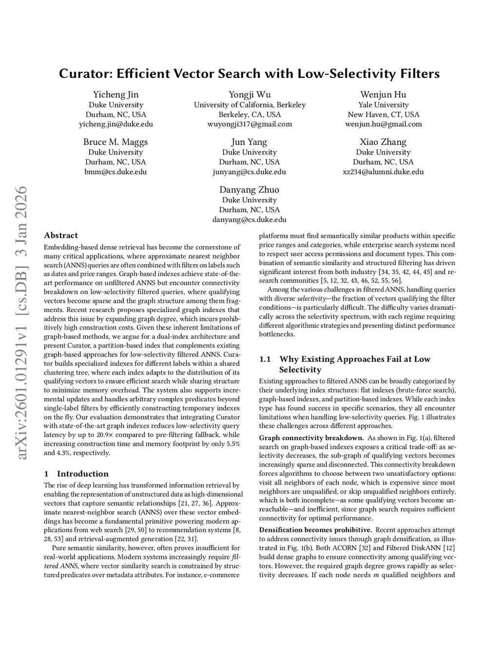 Curator: Efficient Vector Search with Low-Selectivity Filters