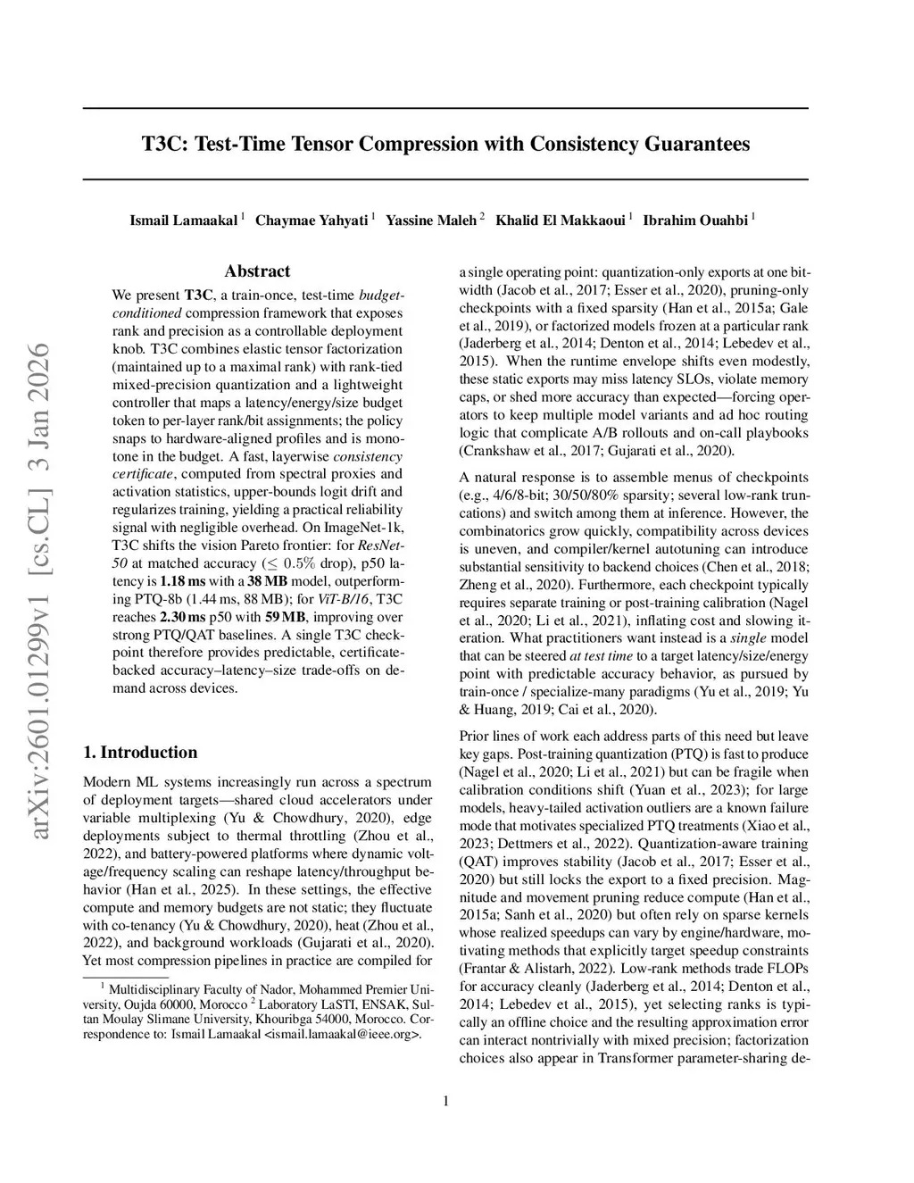 T3C: Test-Time Tensor Compression with Consistency Guarantees