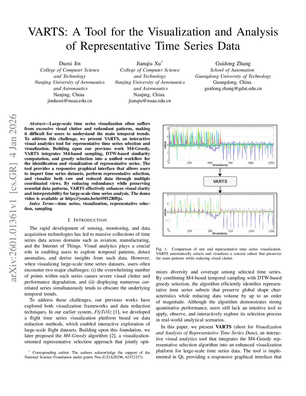 Large-scale time series visualization often suffers from excessive visual clutter and redundant patterns, making it difficult for users to understand the main temporal trends. To address this challenge, we present VARTS, an interactive visual analytics tool for representative time series selection and visualization. Building upon our previous work M4-Greedy, VARTS integrates M4-based sampling, DTW-based similarity computation, and greedy selection into a unified workflow for the identification and visualization of representative series. The tool provides a responsive graphical interface that allows users to import time series datasets, perform representative selection, and visualize both raw and reduced data through multiple coordinated views. By reducing redundancy while preserving essential data patterns, VARTS effectively enhances visual clarity and interpretability for large-scale time series analysis. The demo video is available atthis https URL.