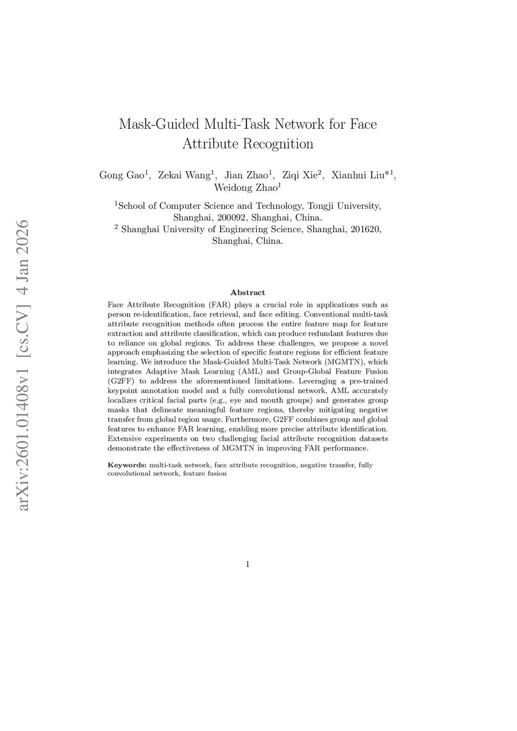 Mask-Guided Multi-Task Network for Face Attribute Recognition