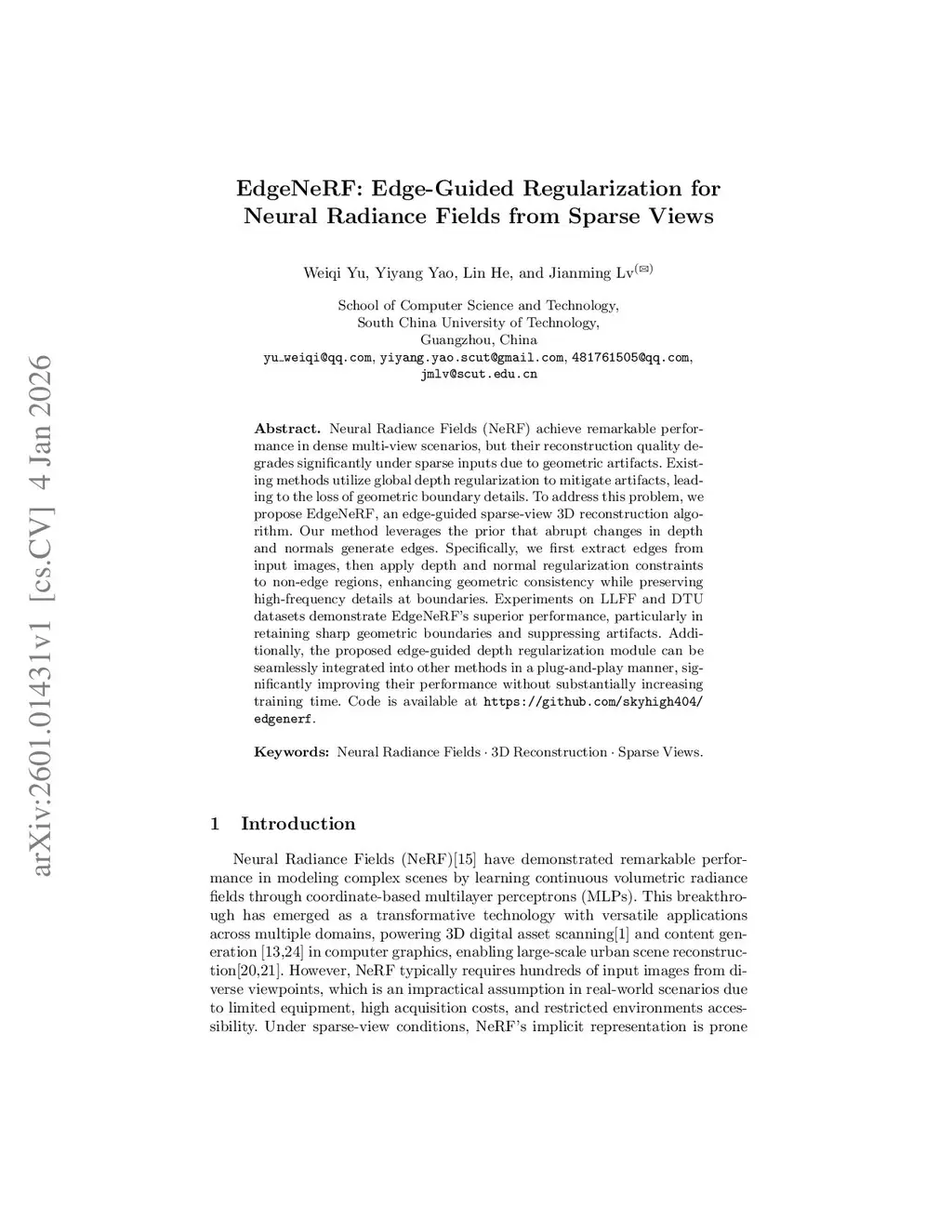 EdgeNeRF: Edge-Guided Regularization for Neural Radiance Fields from Sparse Views