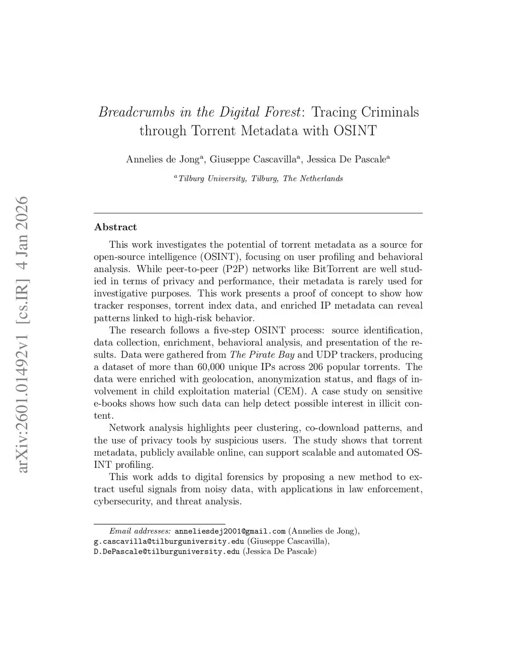 Breadcrumbs in the Digital Forest: Tracing Criminals through Torrent Metadata with OSINT