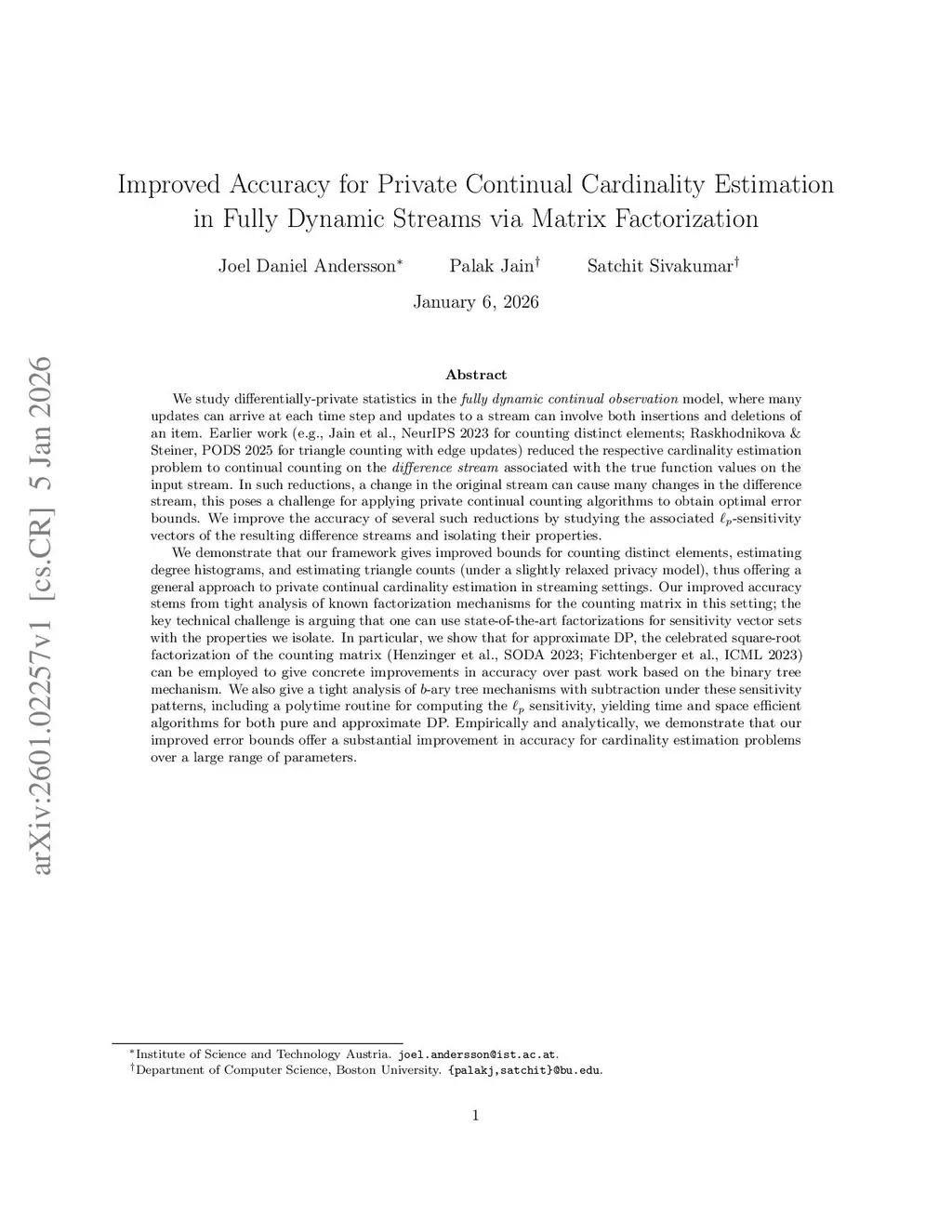 We study differentially-private statistics in the fully dynamic continual observation model, where many updates can arrive at each time step and updates to a stream can involve both insertions and deletions of an item. Earlier work (e.g., Jain et al., NeurIPS 2023 for counting distinct elements; Raskhodnikova & Steiner, PODS 2025 for triangle counting with edge updates) reduced the respective cardinality estimation problem to continual counting on the difference stream associated with the true function values on the input stream. In such reductions, a change in the original stream can cause many changes in the difference stream, this poses a challenge for applying private continual counting algorithms to obtain optimal error bounds. We improve the accuracy of several such reductions by studying the associated -sensitivity vectors of the resulting difference streams and isolating their properties.We demonstrate that our framework gives improved bounds for counting distinct elements, estimating degree histograms, and estimating triangle counts (under a slightly relaxed privacy model), thus offering a general approach to private continual cardinality estimation in streaming settings. Our improved accuracy stems from tight analysis of known factorization mechanisms for the counting matrix in this setting; the key technical challenge is arguing that one can use state-of-the-art factorizations for sensitivity vector sets with the properties we isolate. Empirically and analytically, we demonstrate that our improved error bounds offer a substantial improvement in accuracy for cardinality estimation problems over a large range of parameters.