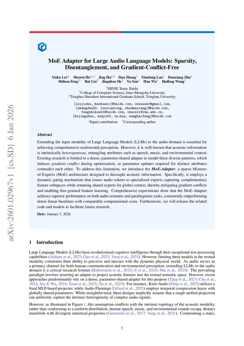 MoE Adapter for Large Audio Language Models: Sparsity, Disentanglement, and Gradient-Conflict-Free