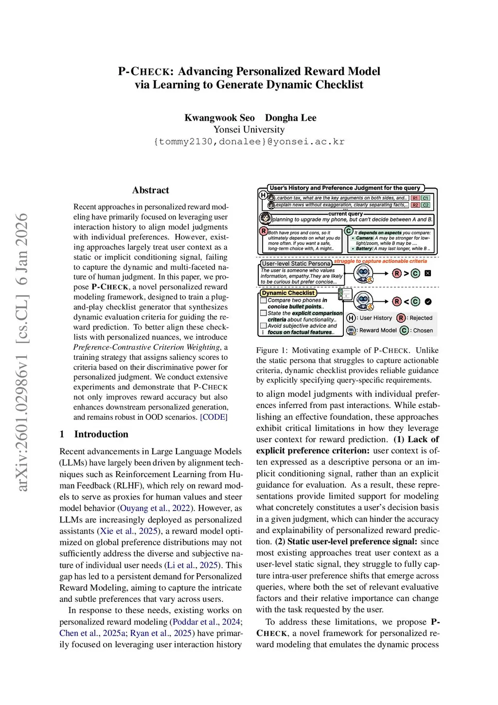 P-Check: Advancing Personalized Reward Model via Learning to Generate Dynamic Checklist